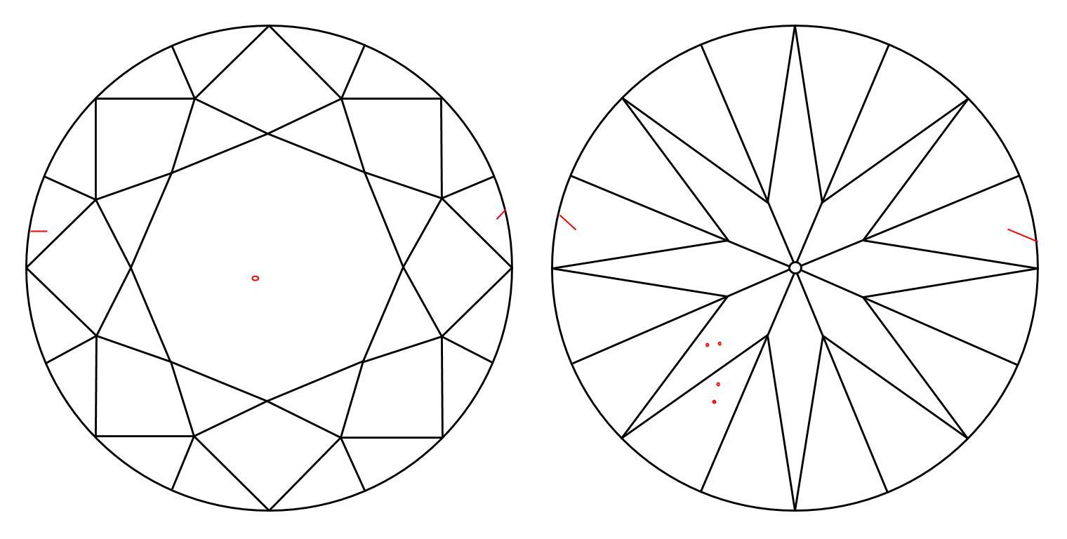 For example, a 1 carat diamond could have a Visual Carat of 1.05 (meaning it looks like your average 1.05 carat diamond) or a smaller Visual Carat like 0.95 (meaning it looks like a 0.95 carat diamond when viewed from above).